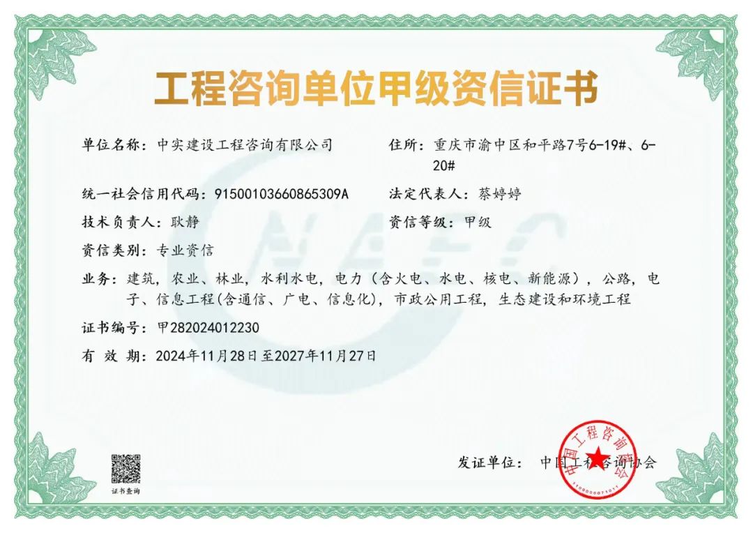 榮耀再續(xù) 賦能增效|中實(shí)咨詢獲批工程咨詢單位甲級資信